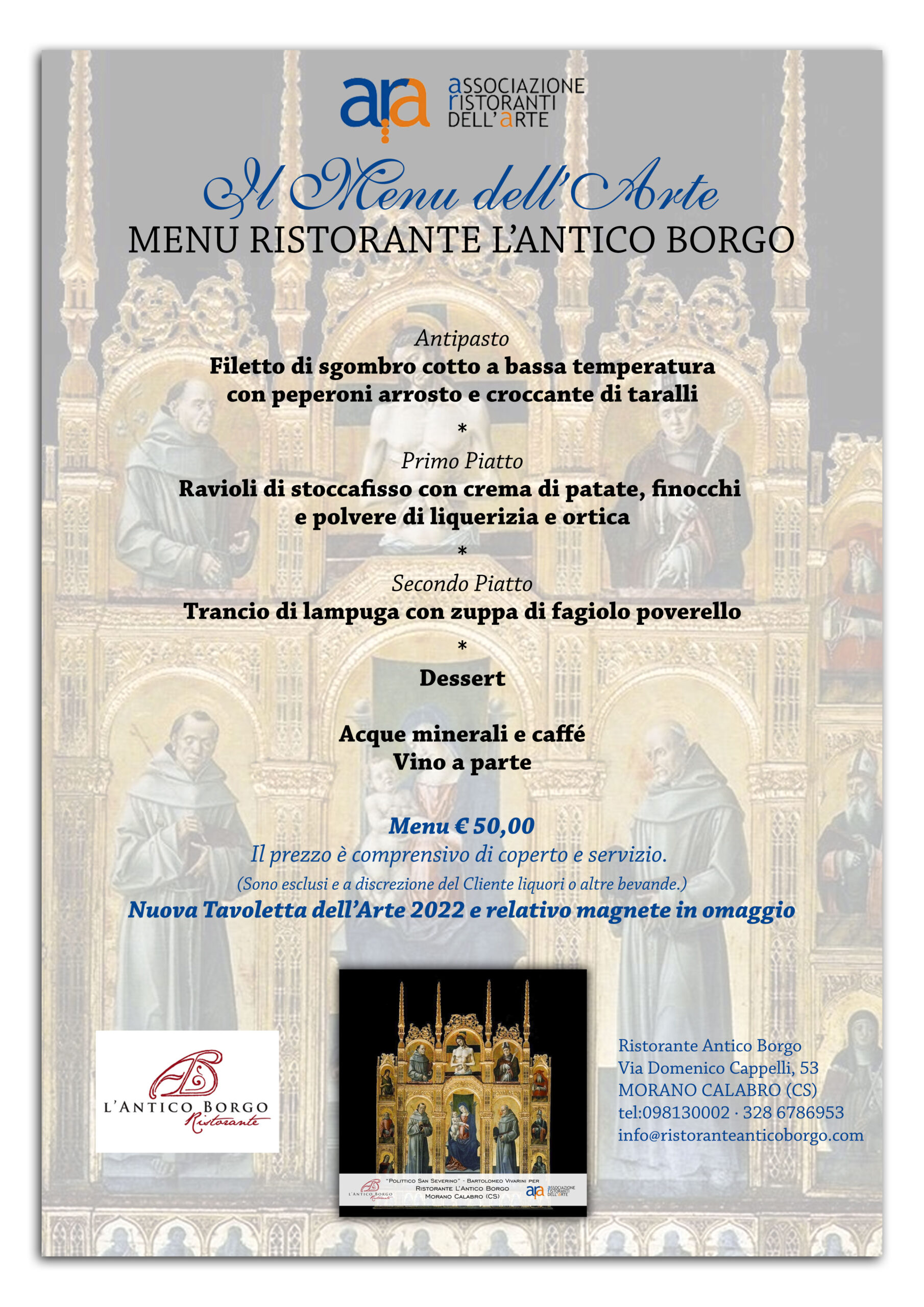 I Ristoranti ARA offrono un menu dell'arte dedicato per gli ospiti che lo gradiscono, con omaggio della tavoletta ARA.
