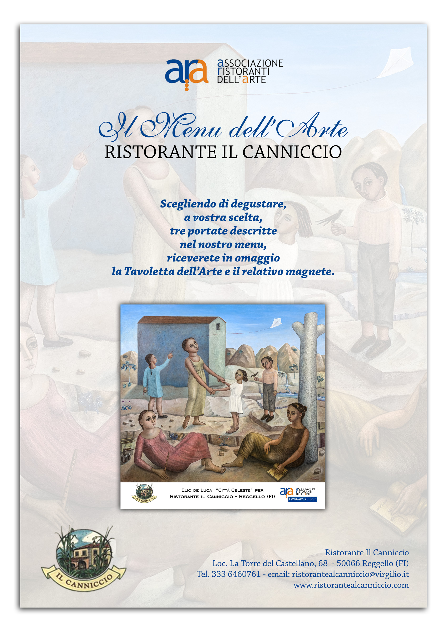 Scegliendo di degustare, a vostra scelta, tre portate descritte nel nostro menu, riceverete in omaggio la Tavoletta dell’Arte 2023.