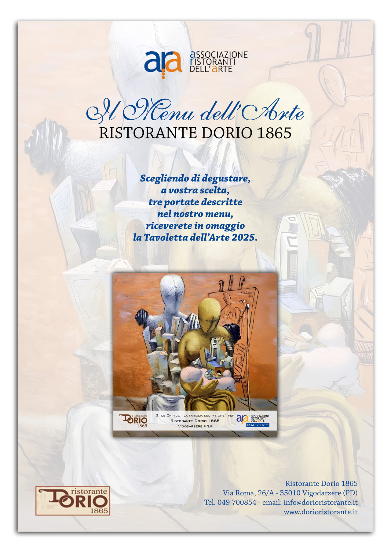 Scegliendo di degustare, a vostra scelta, tre portate descritte nel nostro menu, riceverete in omaggio la Tavoletta dell’Arte 2025.